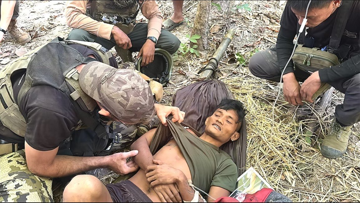 Rangers administer medical aid to a young Burma Army soldier. Photo courtesy of Free Burma Rangers (FBR).