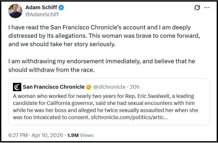 Throughout Spygate, Russiagate and all the impeachment nonsense, Adam Schiff was Batman to Eric Swalwell’s Robin. They were/are peas and carrots, partners in every sense of the word.