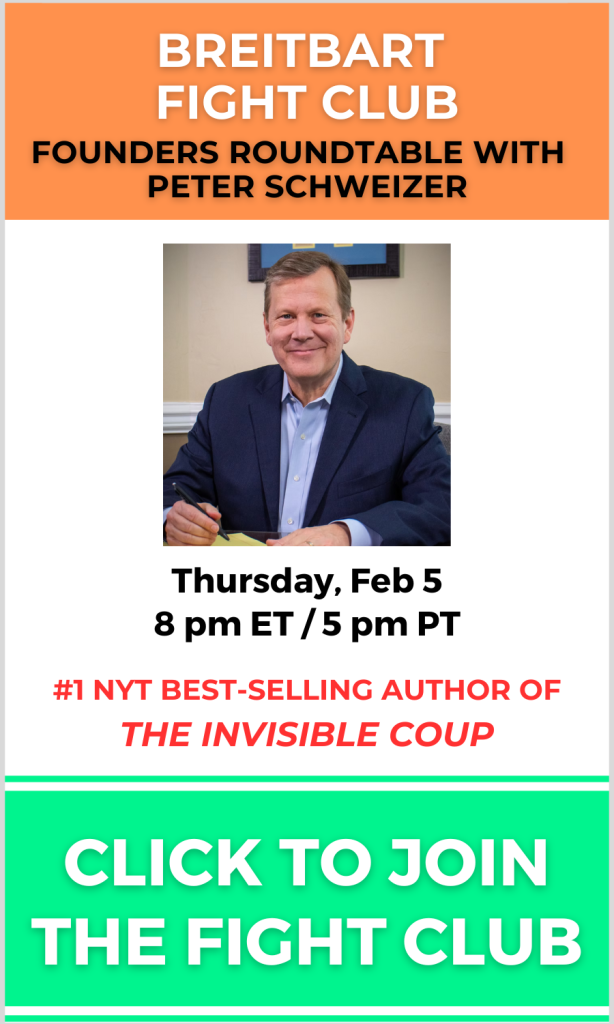 Peter Schweizer’s The Invisible Coup: How American Elites and Foreign Powers Use Immigration as a Weapon debuted at #1 on the New York Times bestseller list. The revelations in this book are shocking and, more importantly, they are dangerous. This is an opportunity for all Breitbart readers to get insights, ask questions, and learn more from the author himself when Schweizer enters the ring of the Breitbart Fight Club at our February 5 Founders’ Roundtable.