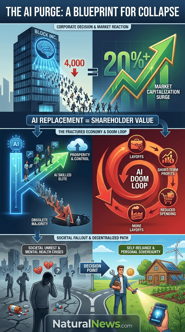 Read Full Article: https://www.naturalnews.com/2026-02-27-jack-dorseys-ai-purge-4000-jobs-axed.html