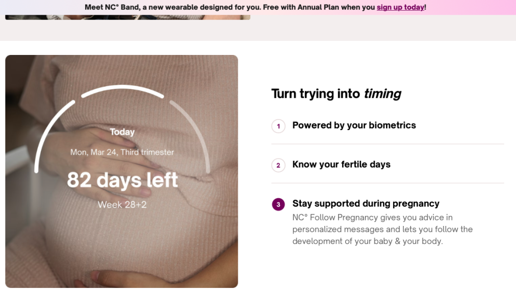 Natural Cycles markets itself as a natural alternative to hormonal birth control, as well as an app that can help women “get pregnant faster.” Its website claims to support women during pregnancy with “advice in personalized messages” and the ability to “follow the development of your baby & your body.”