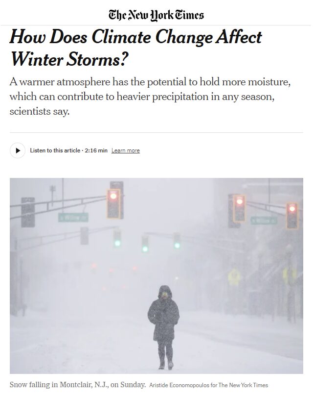 Share Facebook Twitter LinkedIn Pinterest Email Global Warming Caused the Winter Storms – Or Something Like That Via Committee to Unleash Prosperity: Read Full Article: https://www.climatedepot.com/2026/01/28/new-york-times-global-warming-caused-the-winter-storms-or-something-like-that/?utm_source=rss&utm_medium=rss&utm_campaign=new-york-times-global-warming-caused-the-winter-storms-or-something-like-that