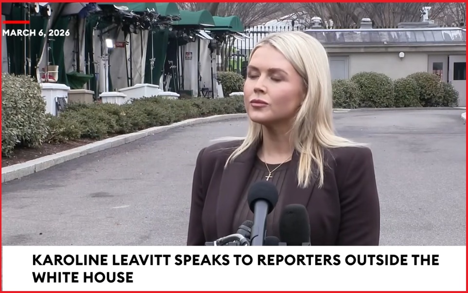 White House Press Secretary Karoline Leavitt delivers remarks to the assembled press pool and answers questions outside the White House. As Leavitt notes, President Trump expected the Iran conflict to last 4 to 6 weeks on a schedule and the operation is ahead of schedule.