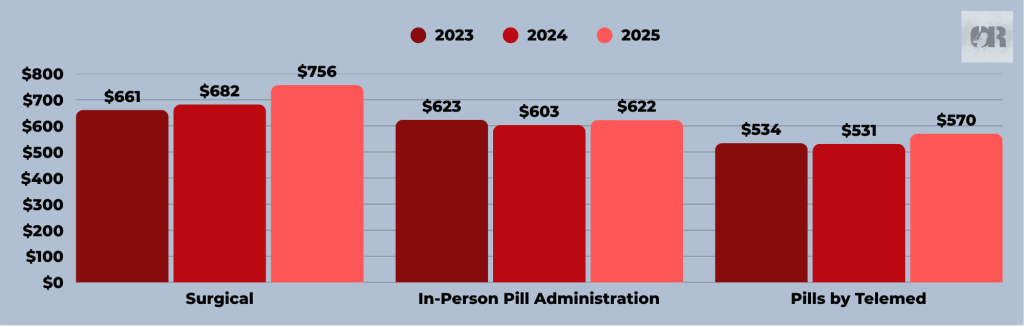 In 2025, the average cost of a first-trimester abortion rose from $605 to $649 – the highest average cost ever documented, and the largest increase overall ($44), in the last ten years.