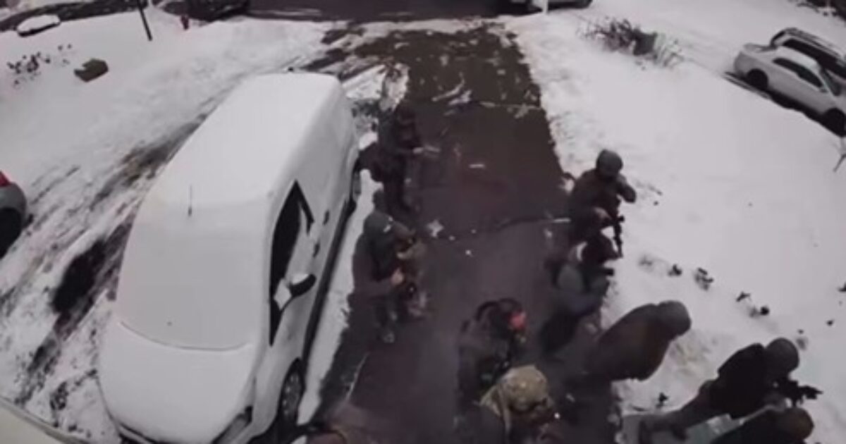 ICE agents launch a raid in Minnesota. Credit: Ring Camera/ Katie Daviscourt X