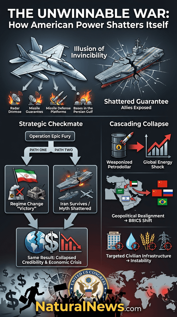 Share Facebook Twitter LinkedIn Pinterest Email Why Trump Has Already Lost: The Unwinnable War and the Shattered Illusion of American Power Introduction: A War Lost Before It’s Won Read Full Article: https://www.naturalnews.com/2026-03-05-unwinnable-war-and-shattered-illusion-american-power.html
